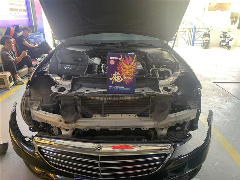 奔驰E300远光位LED反光杯改立盯五龙珠双直射激光透镜